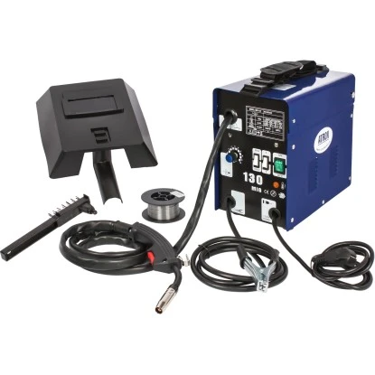 Im Lieferumfang enthalten ist auch ein 5-teiliges Zubehörset mit Massekabel mit -klemme, Schweißkabel mit Elektrodenhalter, Hammer/Bürste, Schweißmaske sowie 250 g Fülldraht.