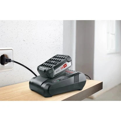 Das Bosch Akku-Ladegerät AL 1880 CV verfügt über eine moderne Ladetechnik und eine Kühlung des Akkus im Lader. Das Ladegerät besticht durch eine schnelle Ladezeit des Akkus: 80 % nach 36 min und 100 % nach 55 min.