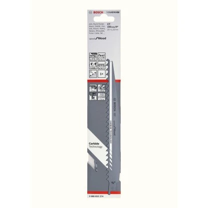 Das Bosch Säbelsägeblatt S 1142 KHM Speed for Wood ermöglicht ein schnelleres Schneiden in Hartholz beim Entfernen von Baum- und Buschwurzeln. Dank der Hartmetalltechnologie ist das Sägeblatt besonders langlebig und gut geeignet für robuste Einsätze. Für das schnelle Schneiden von Frischholz und Wurzeln sorgen die großen Spannräume und eine Zahnteilung von 8 mm. Der dicke Körper und die hohe Blattbreite sind optimal für eine hohe Stabilität und Festigkeit.