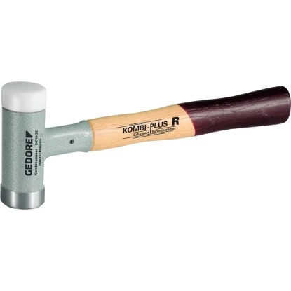 Der Gedore Kombinationshammer 247 H-35 ist ein rückschlagfreier Schon- und Schlosserhammer in einem. Der GS-geprüfte (VPA Remscheid) Hammer wird im Gedore Werk in Österreich hergestellt. Durch seine spezielle Metallfüllung im Hammergehäuse hat er eine wesentlich höhere Schlagwirkung gegenüber herkömmlichen Schon- und Schlosserhämmern. Ein leichteres Arbeiten wird durch den geringeren Kraftaufwand und ein gelenkschonendes Arbeiten durch die rückschlagsfreie Funktion gewährleistet. Der Hickorystiel ist ergonomisch geformt und liegt gut in der Hand. Eine der Schlagflächen hat einen splitterfreien, bruch- und verschleißfesten Polyamidkopf. Der Hammer ist 31 cm lang mit einer durchschnittlichen Schlagfläche von 35 mm. Ein Qualitätsprodukt made by Gedore.