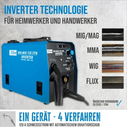 Das Güde Universalschweißgerät Uni-Mig 125 SYN ist ein vielseitiges und kompaktes Schweißgerät, das für gelegentliche und kurze Einsätze bei kleinen bis mittleren Schweißarbeiten im Heimwerker- und Hobbybereich entwickelt wurde. Es bietet eine IGBT-unterstützte Inverter-Technologie, die extrem schnelle Schaltprozesse und eine präzise Schweißstromregulierung ermöglicht.