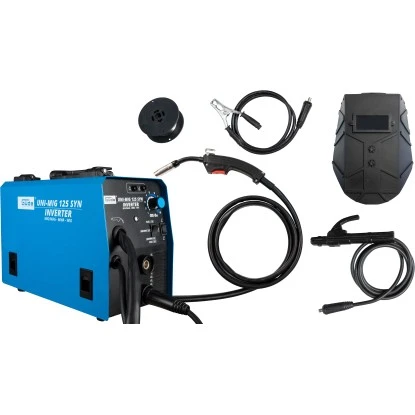 Im Lieferumfang des Uni-Mig 125 SYN sind der Elektrodenhalter, die Masseklemme und ein Bürstenhammer für MMA-Prozesse enthalten. Dies ermöglicht Ihnen einen sofortigen Einsatz und eine effektive Durchführung Ihrer Schweißarbeiten.