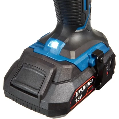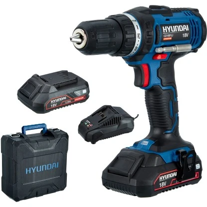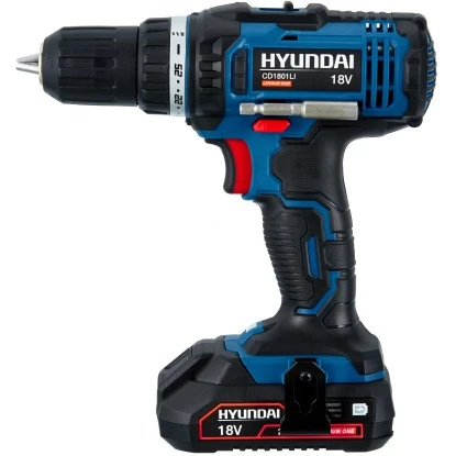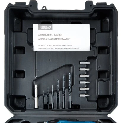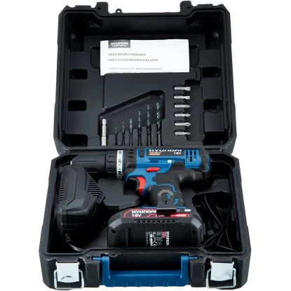 Der kompakte Akku-Bohrschrauber CD1801LI von hyundai unterstützt Sie bei mittelschweren bis schweren Bohr- und Schraubarbeiten in Holz und anderen Materialien. Das innovative Akku-Gerät bietet Ihnen dank kabellosem Betrieb maximale Bewegungsfreiheit beim Schrauben und Bohren und lässt sich jederzeit unabhängig von Stromquellen flexibel verwenden. Geliefert wird der Akku-Bohrschrauber mit zwei hochwertigen Lithium-Ionen-Akkus mit einer Leistung von 18 V. Sie weisen eine Kapazität von 2 Ah auf und zeichnen sich durch ihre robusten und langlebigen Eigenschaften aus – kein Memory-Effekt, keine Selbstentladung. Damit Sie die verbleibende Leistung stets überprüfen können, ist das Gerät mit einer Ladestandsanzeige ausgestattet. Mit dem im Set enthaltenen Ladegerät beträgt die Ladezeit der Akkus lediglich eine Stunde.