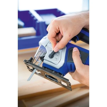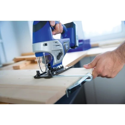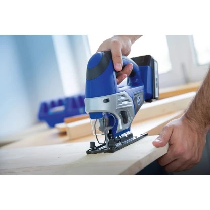Die Stichsäge verfügt über eine Universalaufnahme und kann somit Sägeblätter mit U-Aufnahme als auch T-Aufnahme nutzen. Der Wechsel der Blätter erfolgt einfach, schnell und werkzeuglos. Der ergonomisch geformte Softgrip-Handgriff sowie ein leichtes Gewicht von 2,9 kg sorgen für ein komfortables, ermüdungsfreies Arbeiten. Die integrierte LED-Arbeitsleuchte garantiert Ihnen beste Sicht auf das Werkstück und vereinfacht das Sägen entlang der vorgezeichneten Schnittlinie. Im Lieferumfang sind ein 18 V-LI-Akku, ein Ladegerät, ein Parallelanschlag, ein Sägeblatt, ein Sechskantschlüssel und ein Staubsaugeradapter, der Ihnen ein sauberes Arbeiten ermöglicht, enthalten.