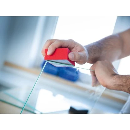 Das rote LUX-TOOLS Diamant Schleifpad erweist sich als nützliches Zubehör für Maurer- und Putzarbeiten. Es lässt sich ideal zum Schleifen und Polieren von Marmor, Glas, Keramik, Granit und Kalkstein verwenden. Mit seiner Körnung von 200 ermöglicht Ihnen das Pad aus Kunststoff ein besonders feines, reinigendes Schleifen. Für ein ermüdungsfreies Arbeiten und eine angenehme Handhabung ist es mit Kerbungen an den Seiten versehen. Das hochwertige Schleifpad mit Diamantbelag besitzt eine Länge von 94 mm bei einer Breite von 58 mm und einer Höhe von 28 mm. Mit diesen Maßen ist es besonders handlich.