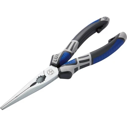 Die vielseitige LUX-TOOLS Telefonzange ist ein universelles Werkzeug zum Greifen von Gegenständen. Sie besitzt eine Länge von 200 mm mit gerade verlaufenden Backen. Durch ihre optimale Hebelübersetzung erlaubt sie Ihnen ein müheloses Trennen von Kabeln oder Drähten. Dabei stellt Ihnen die Flachzange eine überzeugende Qualität zur Verfügung, die sich im häuslichen Einsatz oder am Arbeitsplatz bewährt. Die lange, induktiv gehärtete Schneide sorgt für saubere Schnitte. Sie zeichnet sich durch eine lange Lebensdauer aus.